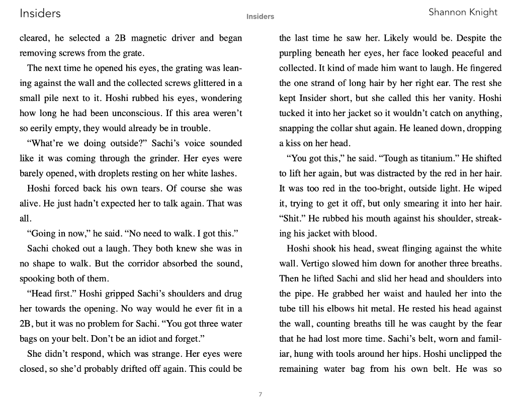 “Insiders is a great space opera. The action starts from the beginning and doesn't let up until the last page. [Knight's] command of creating characters to care about and the use of voice is amazing."” -Jim Arrowood, Jim’s Sci-Fi Blog